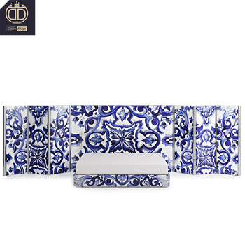 Muebles de dormitorio de estilo mediterráneo tela de porcelana azul y blanca terciopelo reina tamaño king casa villa de lujo cama